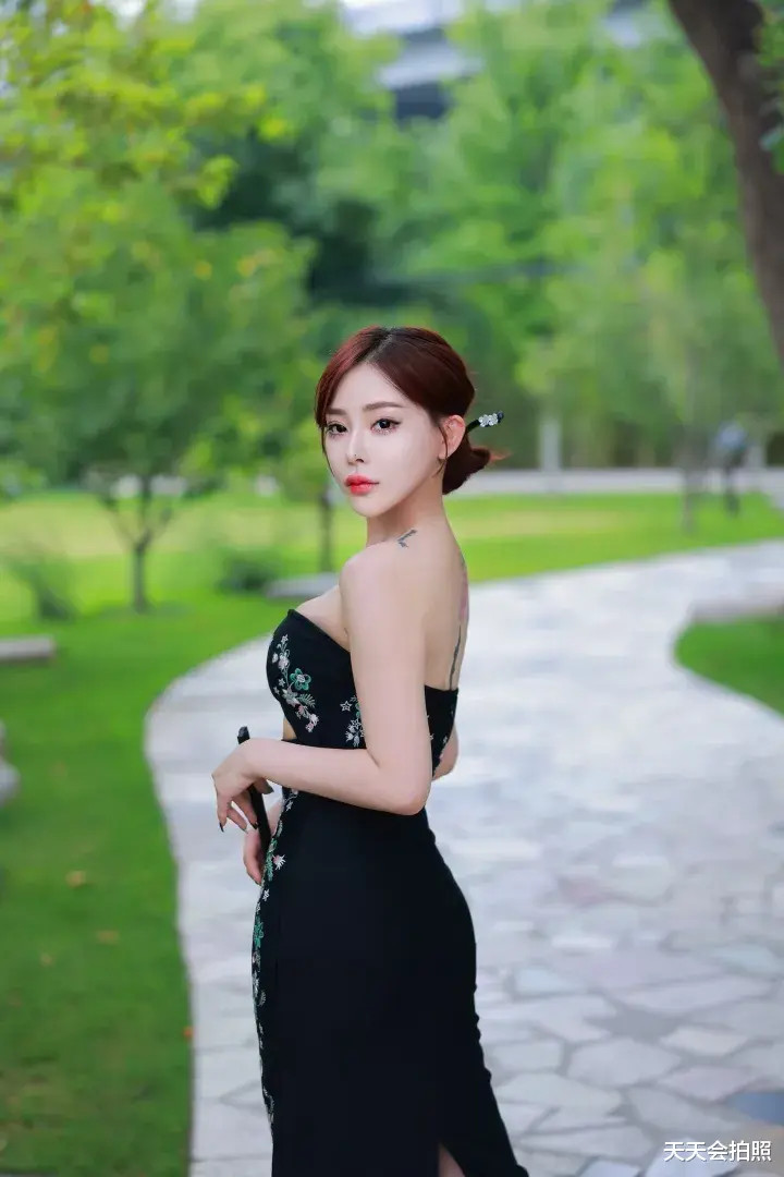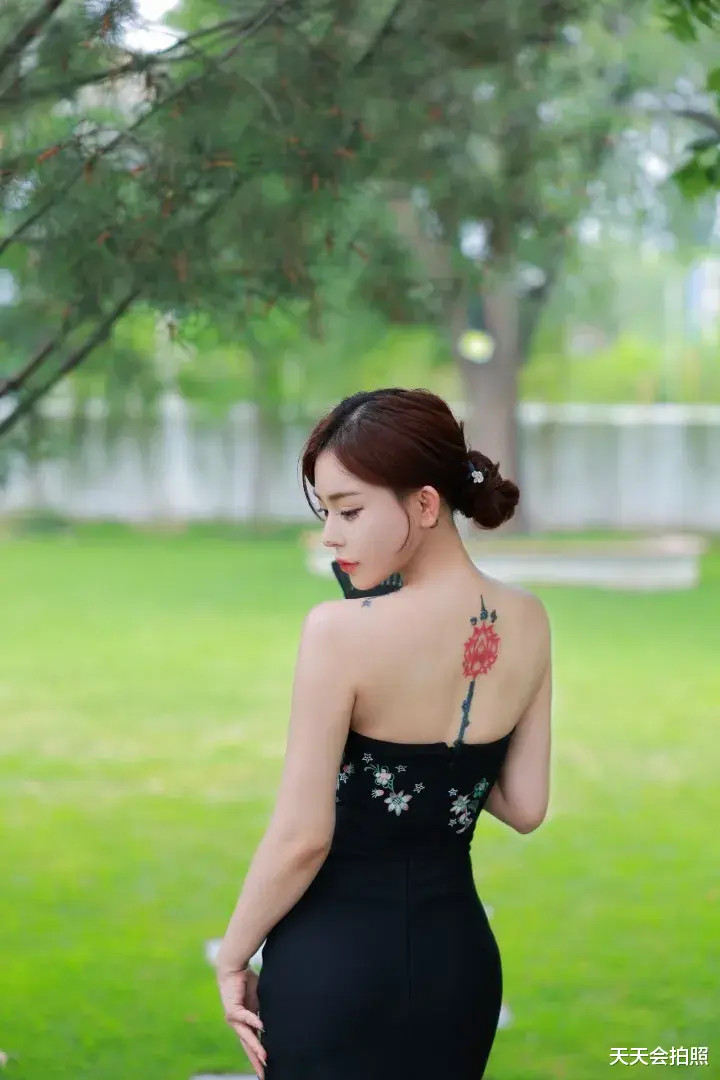 高级的性感,往往在于留白。一个优雅的背影,比任何直白的姿势都更耐人寻味。背对镜头,可以做一个微微侧头的动作,露出漂亮的肩颈线条和背部的纹身细节。这个姿势充满了神秘感,给人无限的想象空间。