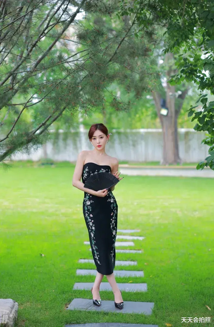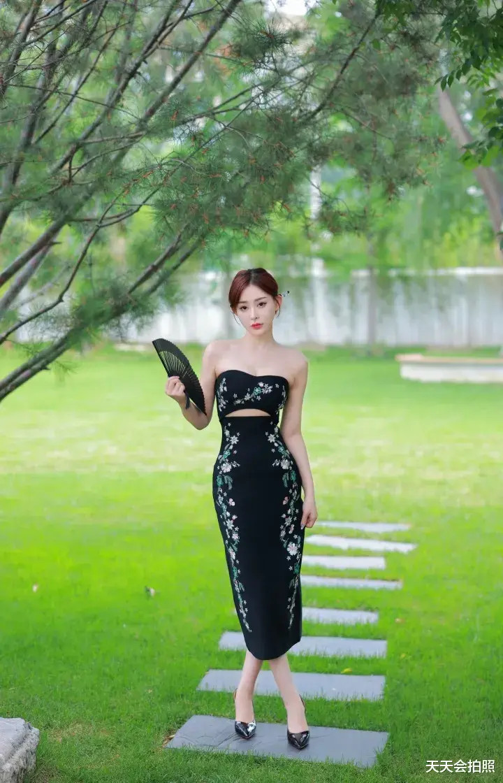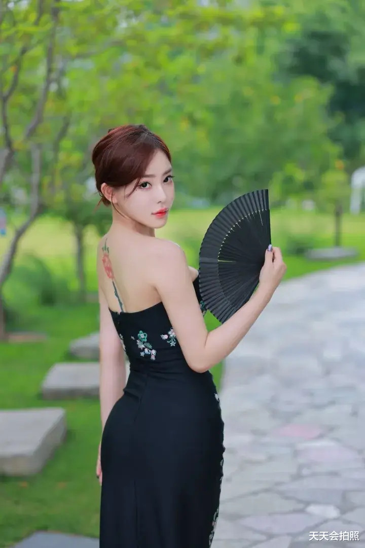 想增加一丝古典的韵味,折扇是最好的道具。手持一把素雅的折扇,身体站直,这个姿势能瞬间让你显得非常挺拔、有气质,充满了东方女性的端庄和内敛。视线可以不看镜头,营造一种画中人的氛围。