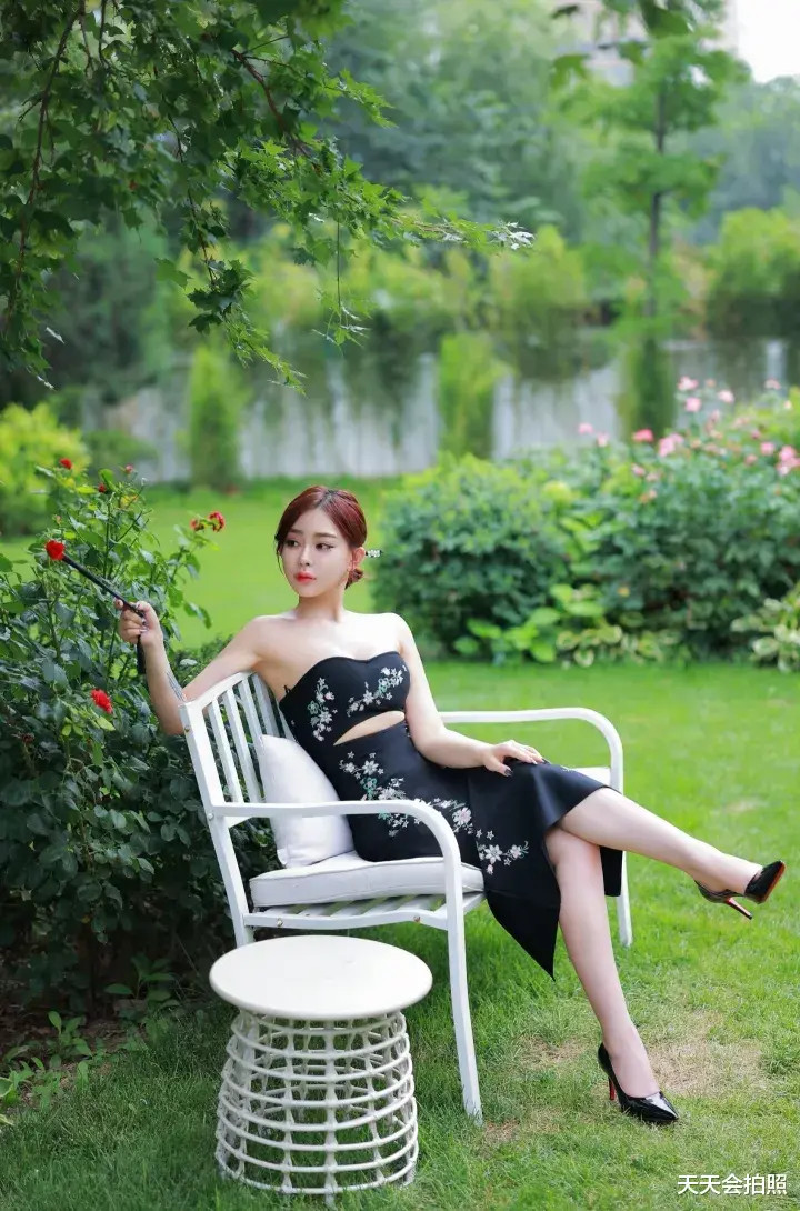 这是最能展现小妈风精髓的姿势之一。慵懒地斜靠在椅子上,双腿交叠,尽情地舒展身体。这个姿势充满了松弛感和贵气,仿佛一个养尊处优的庄园女主人,在自己的后花园里享受午后时光,风情又高级。